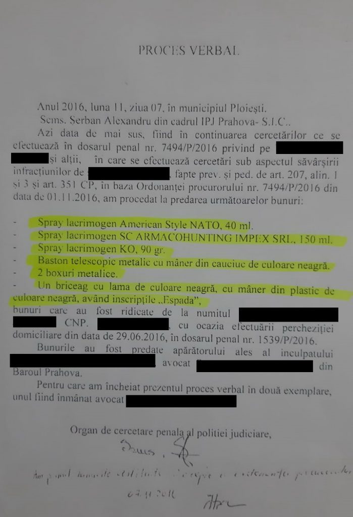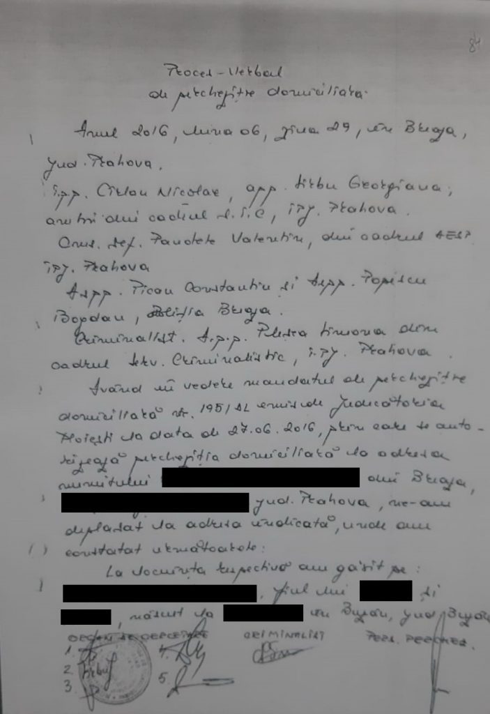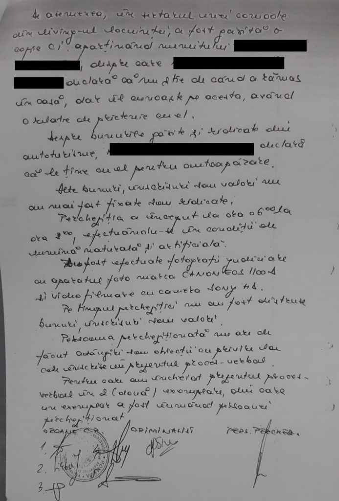 • detinem un proces-verbal de perchezitie domiciliara incheiat in 29.06.2016 din care rezulta fara echivoc bunurile ridicate (pe care il atasam prezentei solicitari).