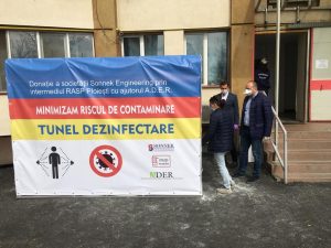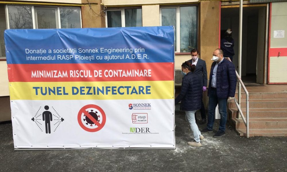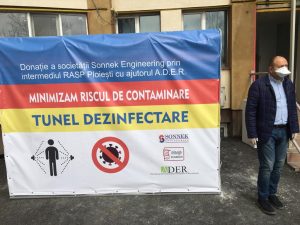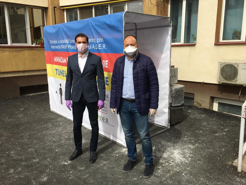 Sonnek Enineering, prin managerul Med Consulting, Florin Oancea, prin intermediul Regiei Autonome de Servicii Publice Ploiești, și al Asociației pentru Dezvoltare Europeană și Reconstrucție (ADER), reprezentate de Raul Petrescu, au avut inițiativa lăudabilă de a dona un tunel de dezinfecție cu pulverizare care va crește siguranța tuturor celor care îl vor folosi, pacienți și cadre medicale deopotrivă.