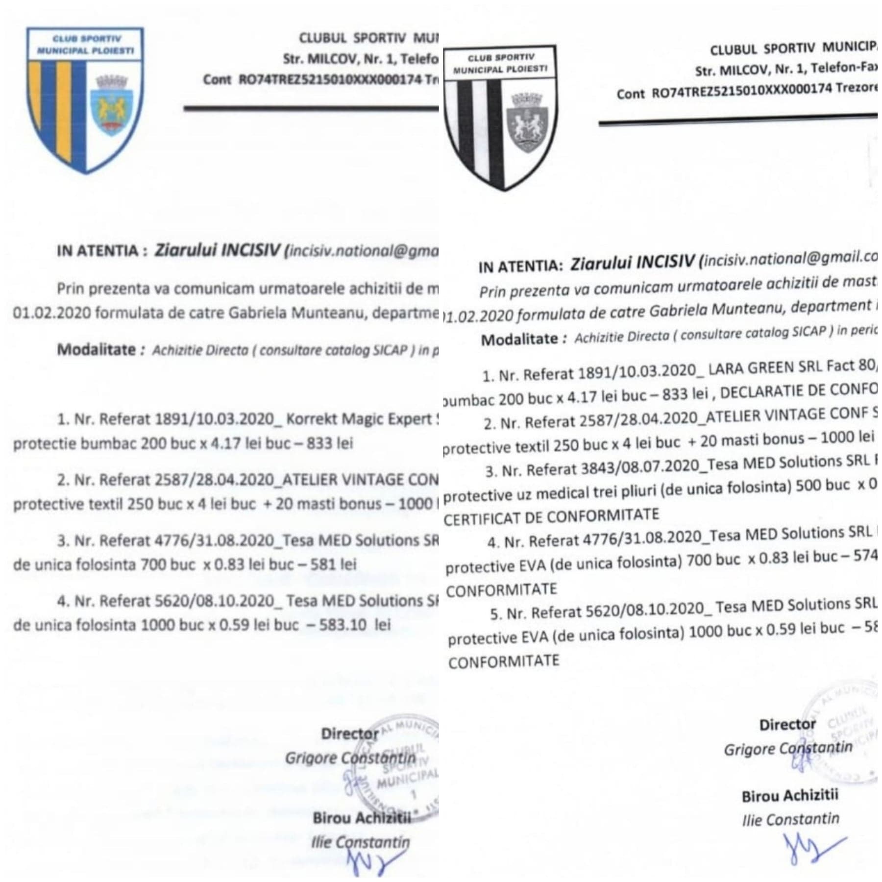 Deci, din adresa 805/10.02.2021 emisa de seful de birou Achizitii din cadrul CSM Ploiesti, Ilie Constantin, a disparut firma Komekt Magic Expert SRL si a aparut societatea Lara Green SRL.