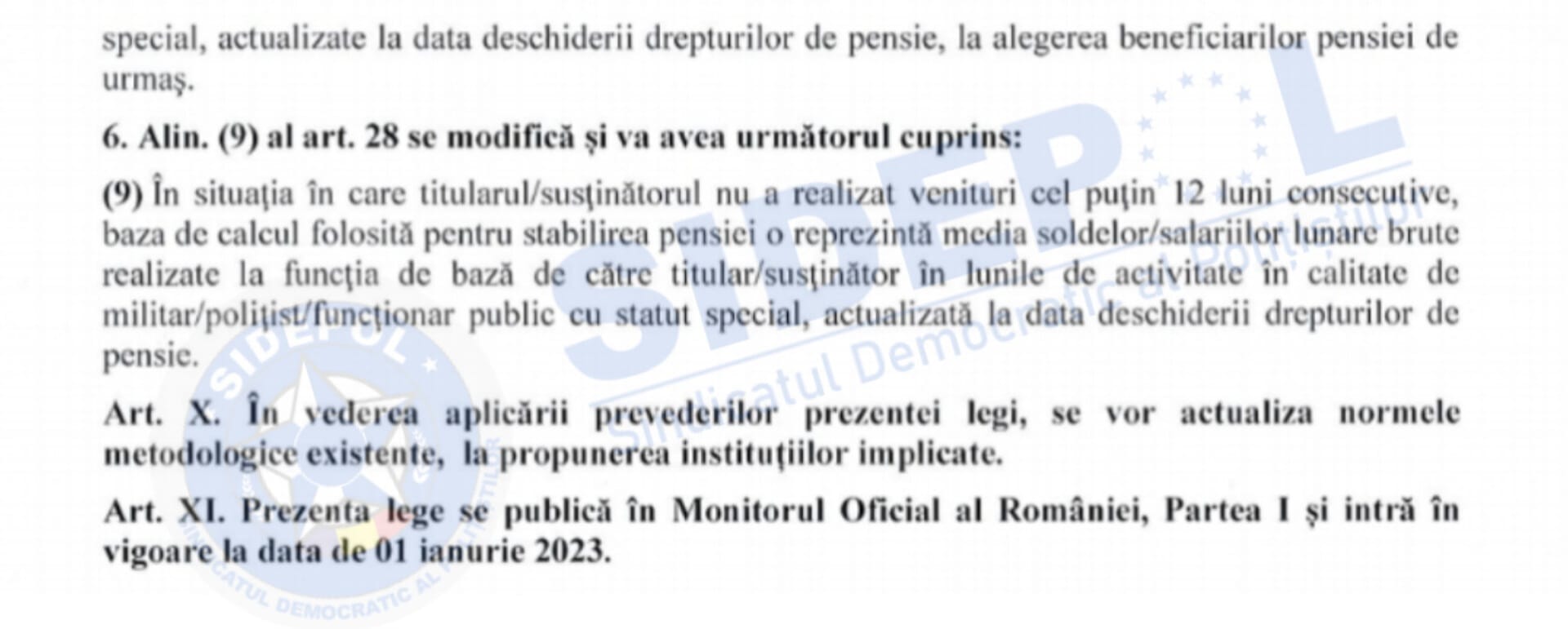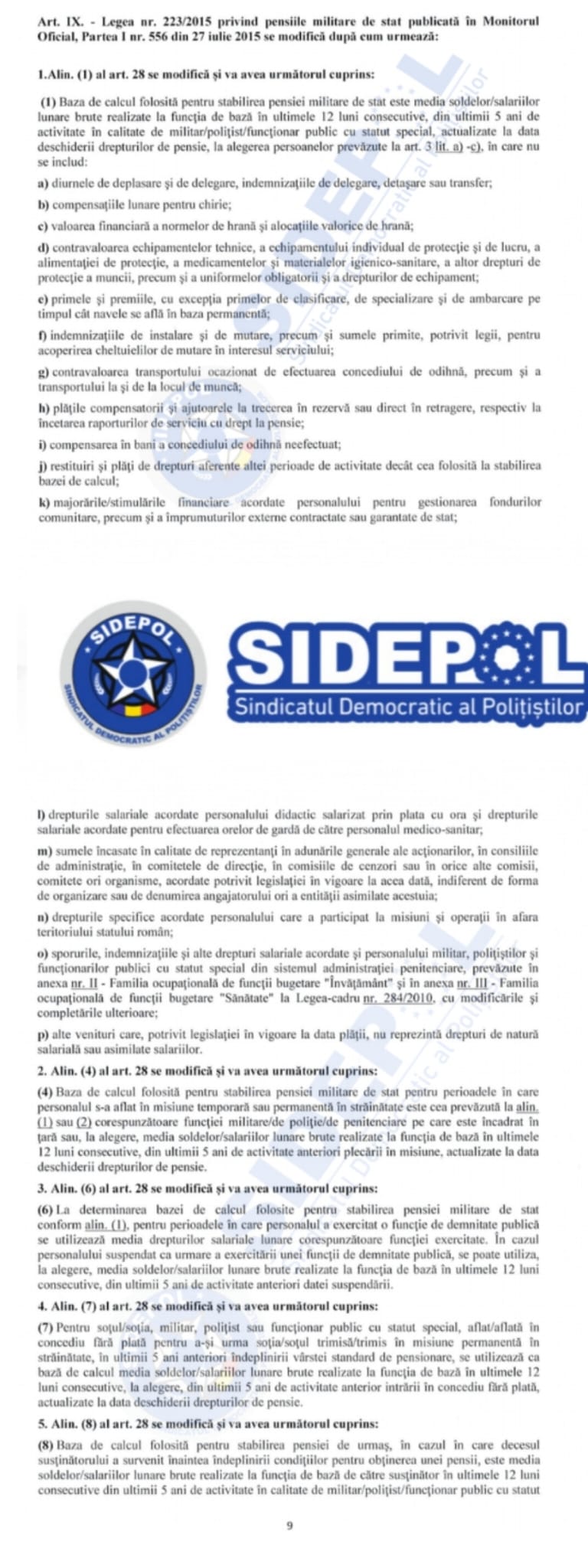 Proiectul vizează, începând cu articolul IX, o serie de modificări asupra Legii 223/2015 privind pensiile militare, modificări pe care le atașăm mai jos: