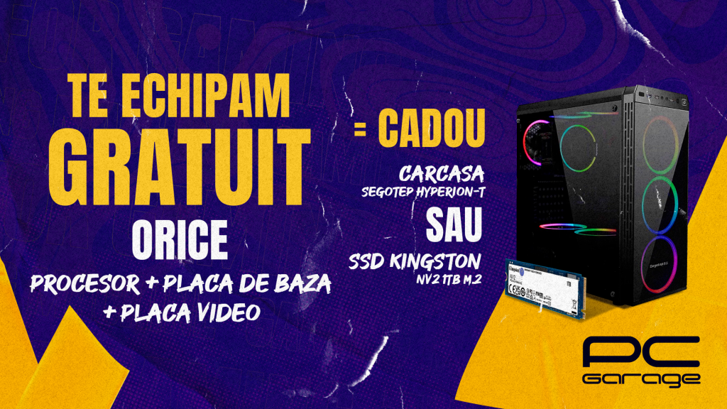 București, România –  PC Garage, unul dintre cele mai mari magazine online de produse IT și electronice din România și în același timp un reper pentru toți cei pasionați de tehnologie, anunță o nouă ediție a campaniei „Te echipăm gratuit”. De data aceasta, campania oferă cadou clienților un SSD M.2 NVMe sau o carcasă ARGB. Campania se desfășoară în perioada 12 iunie – 25 iunie 2023 pentru clienții care vor cumpăra orice procesor + orice placă de bază cu o valoare cumulată de minim 2200 lei.