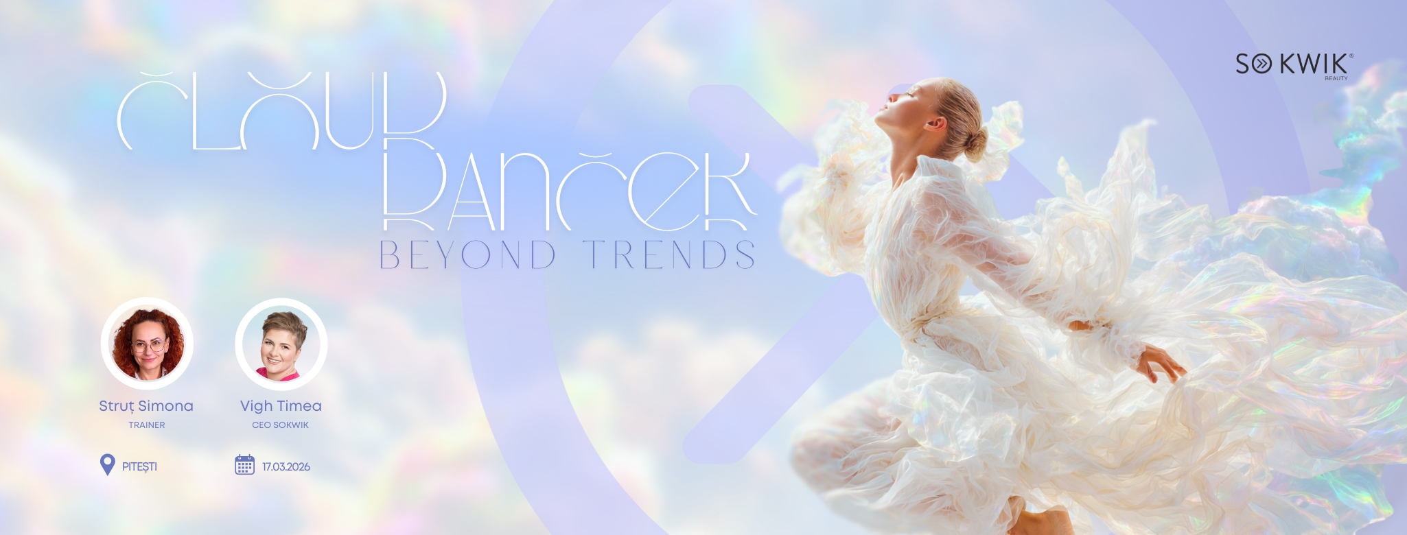 Timea Vigh, CEO si fondator SoKwik Professional Nails, iti va prezenta produsele ideale pentru realizarea manichiurilor Cloud Dancer si iti va oferi recomandari esentiale pentru eficientizarea timpului de lucru si obtinerea unor rezultate impecabile, rezistente si moderne.